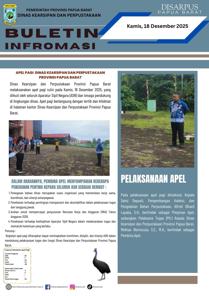 APEL PAGI DINAS KEARSIPAN DAN PERPUSTAKAAN PROVINSI PAPUA BARAT, Kamis, 18 Desember 2025